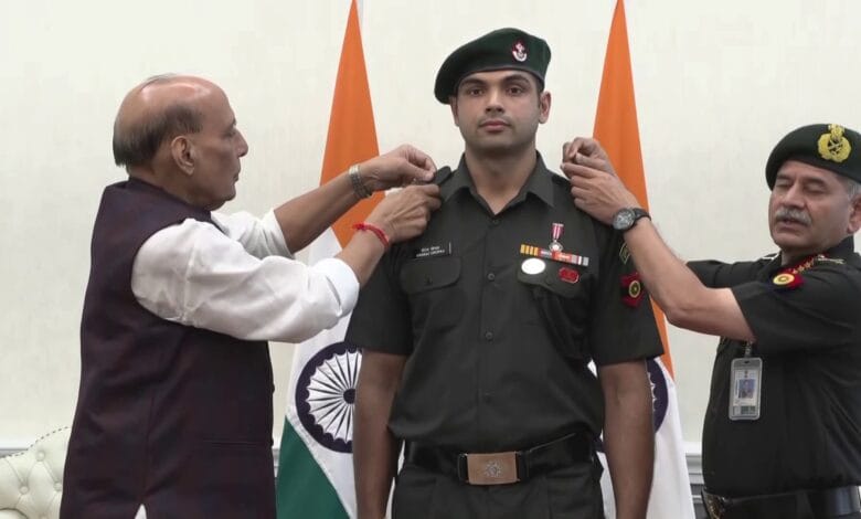 हरियाणा का शेर, सेना का गौरव! ओलिंपिक स्वर्ण विजेता नीरज चोपड़ा को लेफ्टिनेंट कर्नल की उपाधि केंद्रीय रक्षा मंत्री राजनाथ सिंह द्वारा दी गई — THE ASIA PRIME की ओर से हार्दिक बधाई