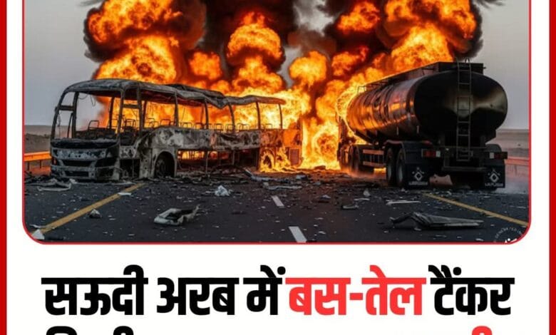 उत्तरार्द्ध रिपोर्ट के मुताबिक, सऊदी अरब के मदीना के पास एक उमरा यात्रियों की बस एक डीजल टैंकर से भिड़ गई। टकराव के तुरंत बाद आग लग गई। हादसे में कम-से-कम 42 भारतीय तीर्थयात्रियों की मौत की सूचना है। जांच जारी है और भारतीय दूतावास ने तीव्र प्रतिक्रिया दी है।