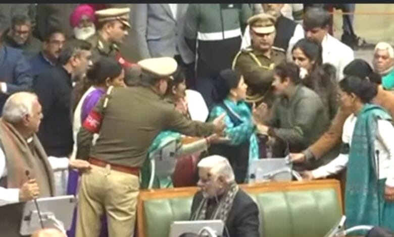 हरियाणा विधानसभा में हंगामा: कांग्रेस–बीजेपी का टकराव, गीता भुक्कल ने विधानसभा में मार्शल को थपड़ मारने की कोशिश की , कांग्रेस सहित कई विधायकों को सदन से नेम