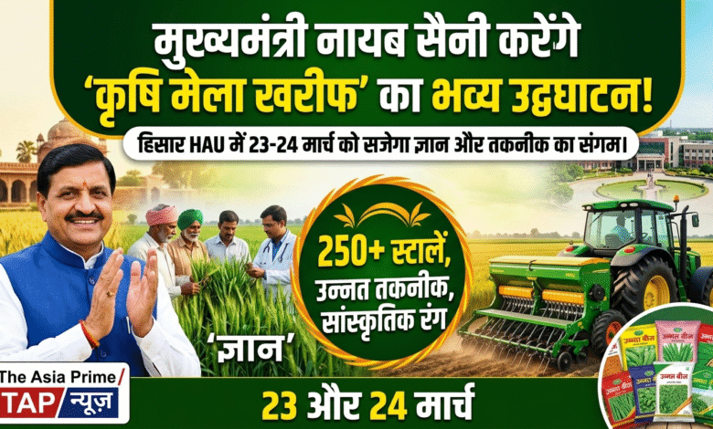 हिसार/.ब्यूरो चीफ: सतबीर जांडली (The Asia Prime / TAP News) : हरियाणा के किसानों के लिए खुशहाली और तकनीक का सबसे बड़ा मंच सजने को तैयार है। आगामी 23 और 24 मार्च को हिसार स्थित चौधरी चरण सिंह हरियाणा कृषि विश्वविद्यालय (HAU) में ‘कृषि मेला खरीफ’ का आयोजन किया जा रहा है। प्रदेश के मुख्यमंत्री श्री नायब सिंह सैनी इस मेले का विधिवत उद्घाटन कर किसानों को संबोधित करेंगे। मेले की तैयारियों का जायजा लेने के लिए कुलपति प्रो. बलदेव राज काम्बोज ने आज मेला परिसर (गेट नंबर 3) का विस्तृत निरीक्षण किया और सभी प्रबंधों को पुख्ता करने के निर्देश दिए।