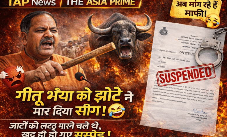 सोनीपत/पंचकूला ब्यूरो चीफ: सतबीर जांडली (The Asia Prime / TAP News) : उत्तर हरियाणा बिजली वितरण निगम (UHBVN) के सोनीपत सर्कल में कार्यरत सुपरिटेंडेंट इंजीनियर (SE) गीतू राम को उनके एक विवादित सोशल मीडिया बयान के बाद तत्काल प्रभाव से निलंबित कर दिया गया है। गीतू राम का एक वीडियो सोशल मीडिया पर तेजी से वायरल हुआ था, जिसमें वे एक समुदाय विशेष (जाट) और पशु (झोटा) के खिलाफ बेहद आपत्तिजनक और हिंसक टिप्पणी करते नजर आ रहे थे।